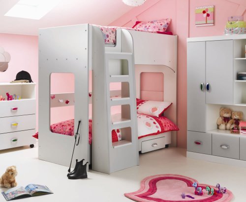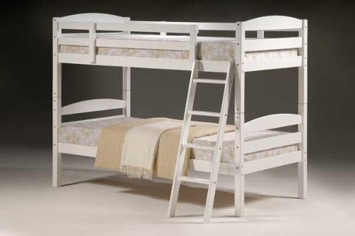 Fantastic white bunk bed frame with smoothed, contemporary edges and smart integrated ladders.