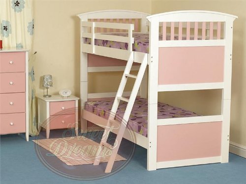 The Kipling Bunk Bed from Sweet Dreams. This superb bunk bed has sturdy railings and a slanted ladder to ensure your child's safety. The Kipling bunk can also be split into two separate single beds. This brilliant bunk bed comes in blue or pink.