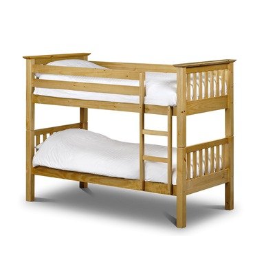 BAR008 A solid pine bunk bed in an antique lacquered finish. The Barcelona bunk is very resiliant for the most active of children Features: -Bunk bed frame. -Solid pine finish. -Material: wood. -Barcelona range. -Ships flat-packed: assembly required. -Mattress not included: Suitable for single sized mattresses. -Dimensions: 209cm L X 107cm W X 159cm H.