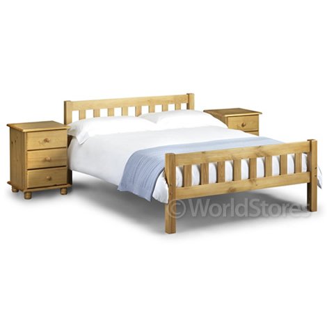 Crafted in an antique pine, the Carlow from Home Comfort is a high foot end bed frame with a slatted head and footboard. In a typical wooden design, this bed features natural knots in the material for style. Supplied flat pack, this bed frame is easy to assemble and comes in a variety of sizes.