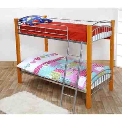 With a combination of hard wood posts and a metal frame structure, the Barcelona Bunk Bed is a modern and stylish new bunk bed that not only looks good but also stands out from the crowd. The posts are made made from a hard wood which has a grazed beech/orange finish to it while the internal structure is made from metal in a silver finish.
