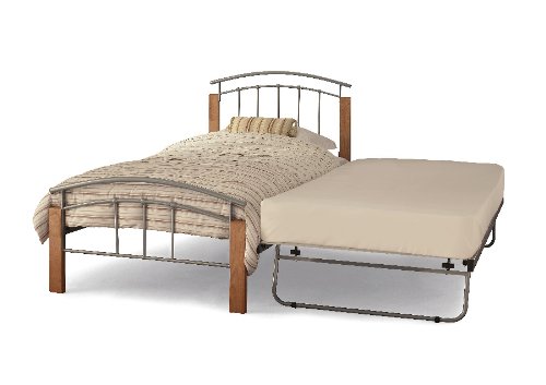 This superb bed from Serene will make a wonderful addition to any bedroom, the foot end is low giving a more spacious appearance. The use of wood and metal make for a winning style combination, plus you can choose between a silver or black finish both with beech legs.
