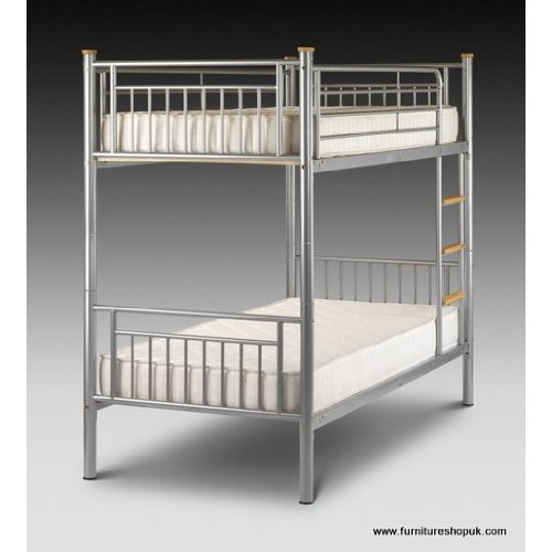 The Atlas Metal Bunk Bed is a great sturdy set of bunk beds. These full size single beds are great for kids or teenagers and the top bunk is accessed via a fixed side ladder.