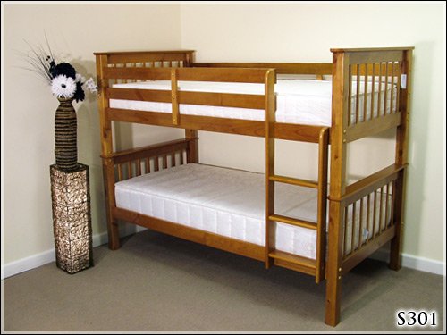 Our classic bunk bed design with its traditional, clean lines is ideal for two children sharing a room together. Available in both a dark pine and white finish, the solid pine construction and sturdy design ensures this great bed will last for years to come. The bunk bed can also be easily split into two separate single beds for when your children get a little older. The timber used is from sustainable New Zealand resources and is of exceptional quality. Using modern construction techniques, this solid pine bunk bed has been completed to the highest of standards. We are confident you will not find a better quality bunk bed for the same price. As with all of our beds, the bunk bed is fully compliant to BS EN747 standards, so you can be rest assured that it has passed all necessary UK safety, strength and durability requirements. Measurements (Approximate): Length: 205cm. Width: 108cm. Height: 156cm. Height from floor to top of bottom side rail: 37cm. Height from floor to base of bottom mattress: 32cm. Under-bed clearance: 28cm.