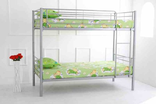 The Calder Bunk Bed Frame can be used as a traditional bunk bed but can also be split to use as two single beds whenever you need. It comes in an attractive silver finish and has a sturdy ladder to climb down from top bunk. The bed bases are made from firm, durable mesh that will withstand even the most vigorous treatment from your kids.