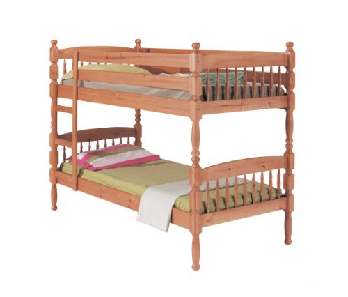 The Milano Bunk Bed is made with extra chunky and solid Brazilian pine. The traditional spindle design is finished in a smooth light antique pine. The strong and solid construction features a secure ladder giving easy access to the top bunk.